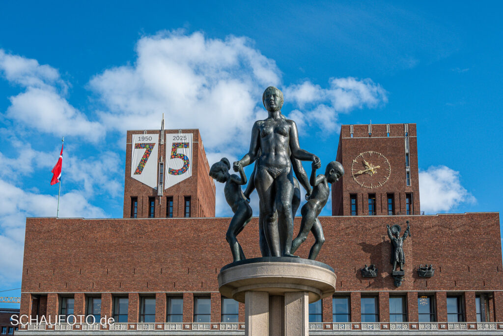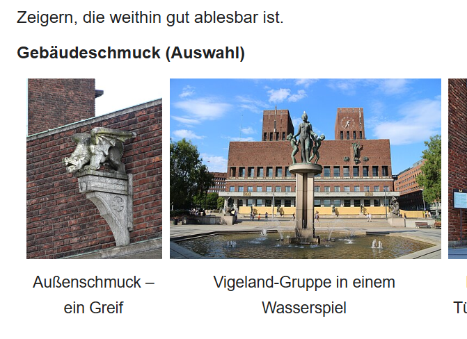 Anmerkung: In der deutschen Wikipedia steht, dass die Brunnenfiguren von Vigeland seien. https://de.wikipedia.org/wiki/Rathaus_Oslo – Screenshot vom 29. Oktober 2025: