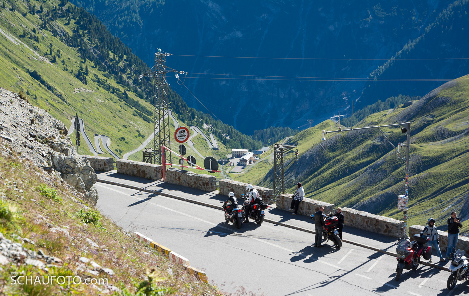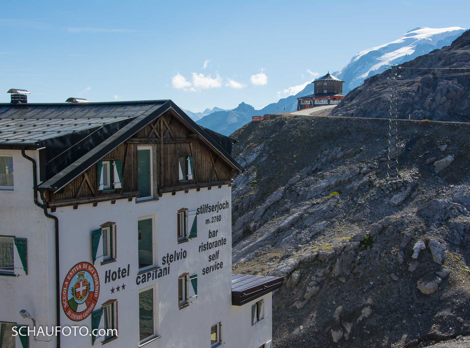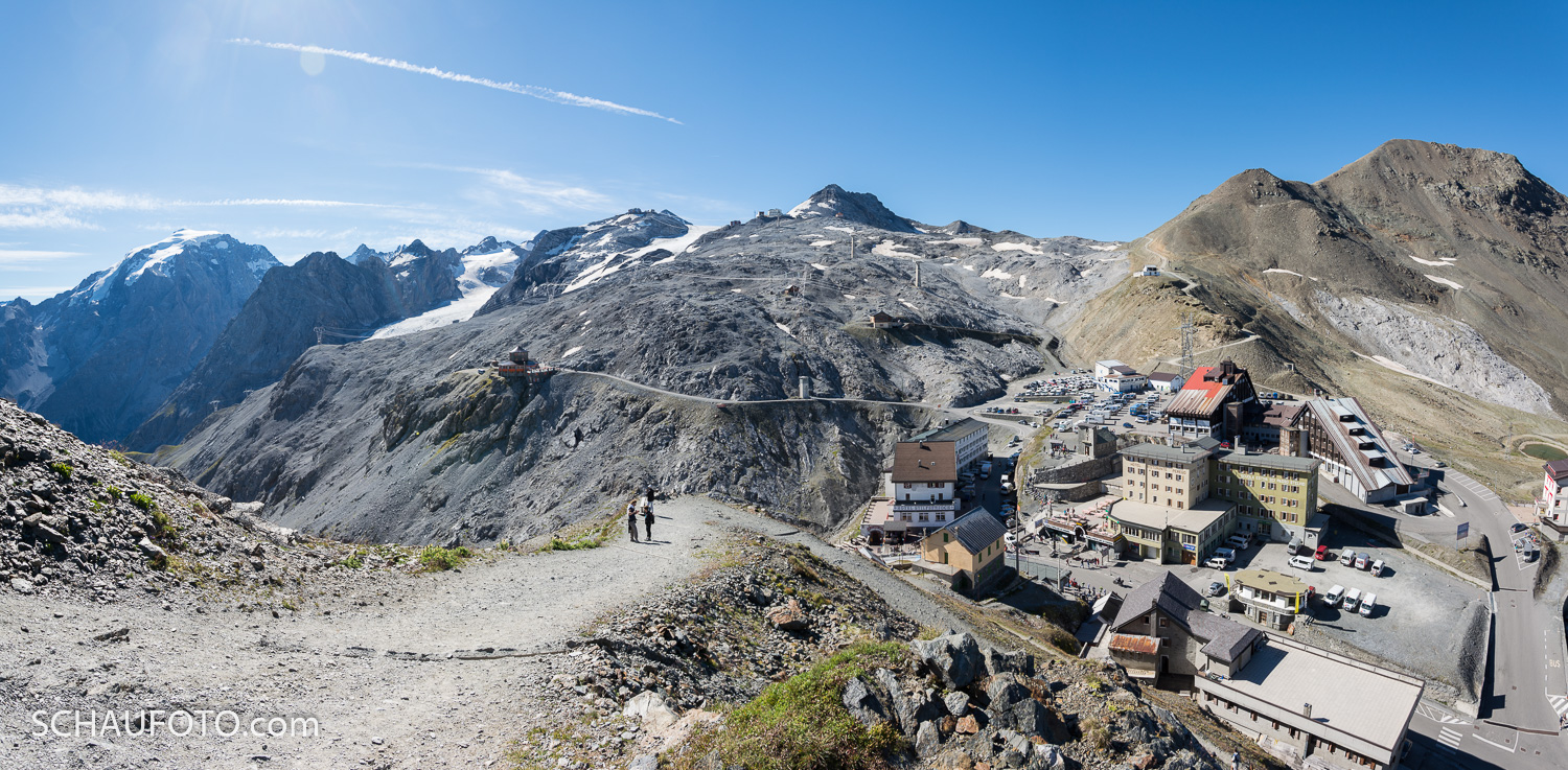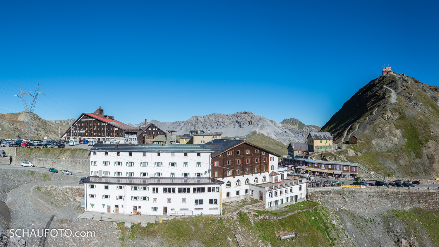 Die massentouristische, wenig auf Harmonie bedachte, Bebauung mag abschrecken. Doch sie scheint ihren Zweck zu erfüllen. Neben dem sommerfesten Skifahrangebot zieht die aberwitzige Passstraße nun einmal massenhaft kurvengeile Biker und höhenmeterverrückte Radfahrer an. Da braucht man auf dem Zielpunkt die entsprechende Infrastruktur, sonst wird es nur noch schlimmer.