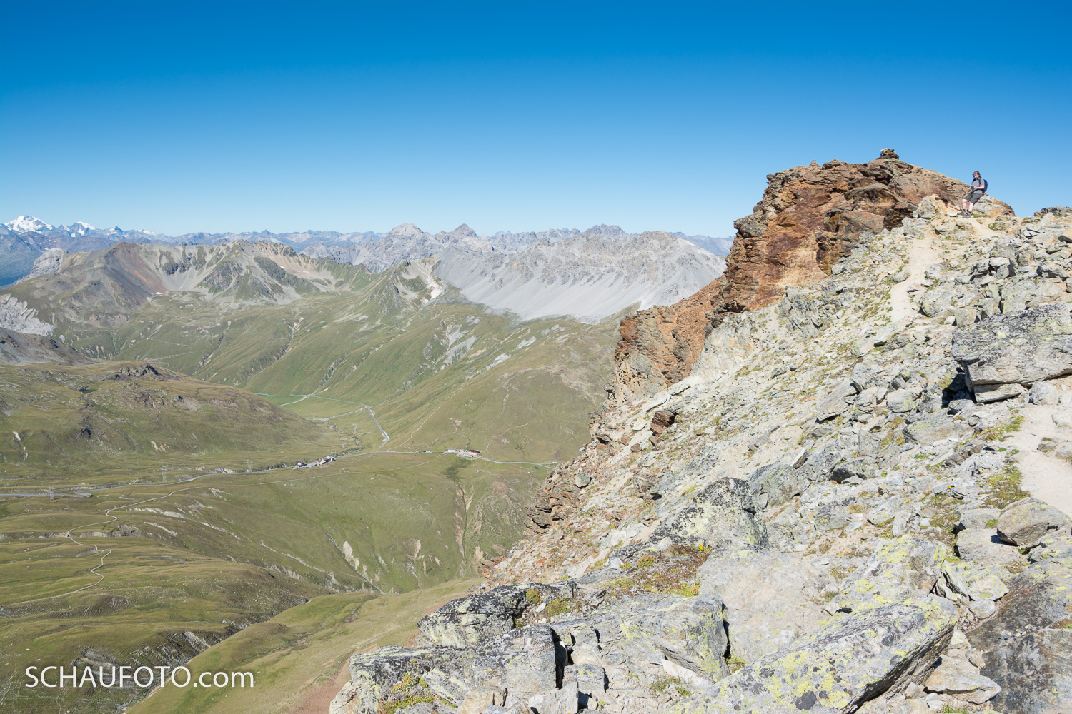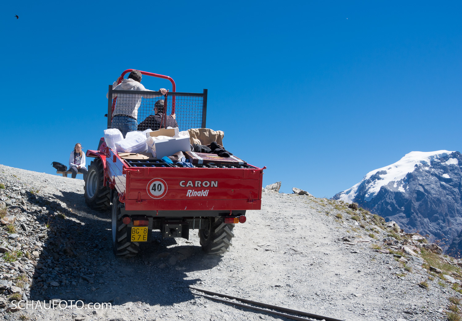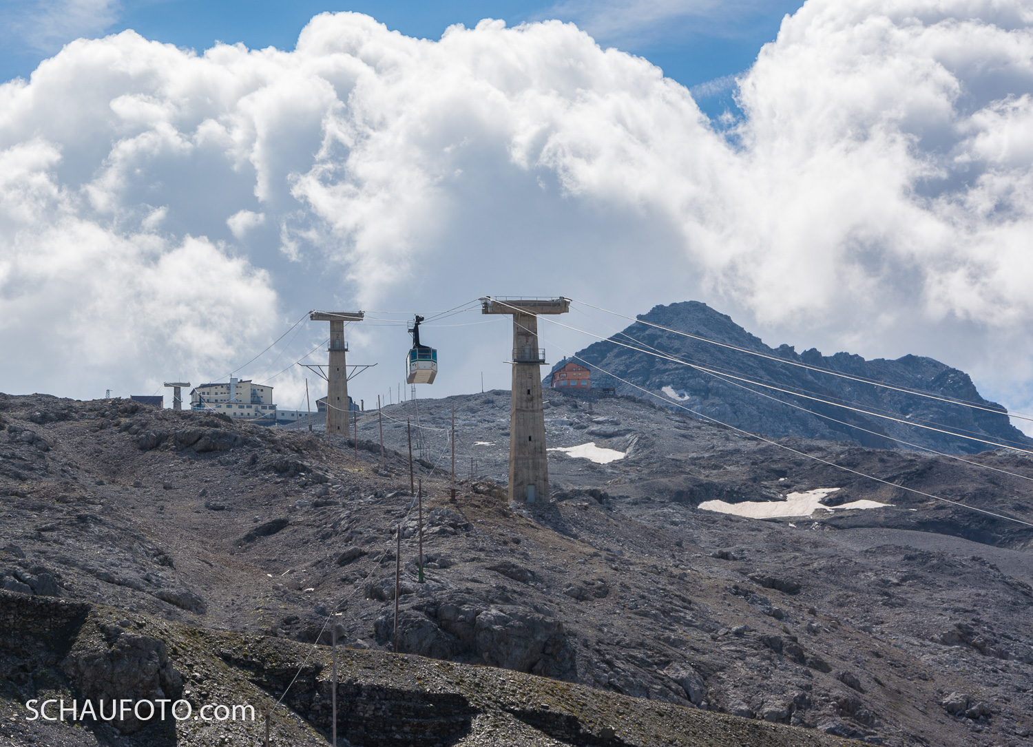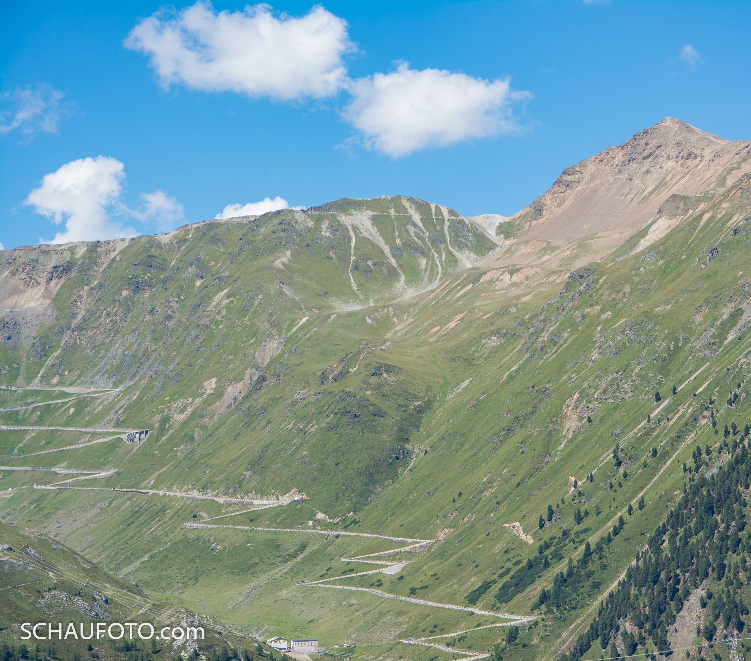 Die massentouristische, wenig auf Harmonie bedachte, Bebauung mag abschrecken. Doch sie scheint ihren Zweck zu erfüllen. Neben dem sommerfesten Skifahrangebot zieht die aberwitzige Passstraße nun einmal massenhaft kurvengeile Biker und höhenmeterverrückte Radfahrer an. Da braucht man auf dem Zielpunkt die entsprechende Infrastruktur, sonst wird es nur noch schlimmer.
